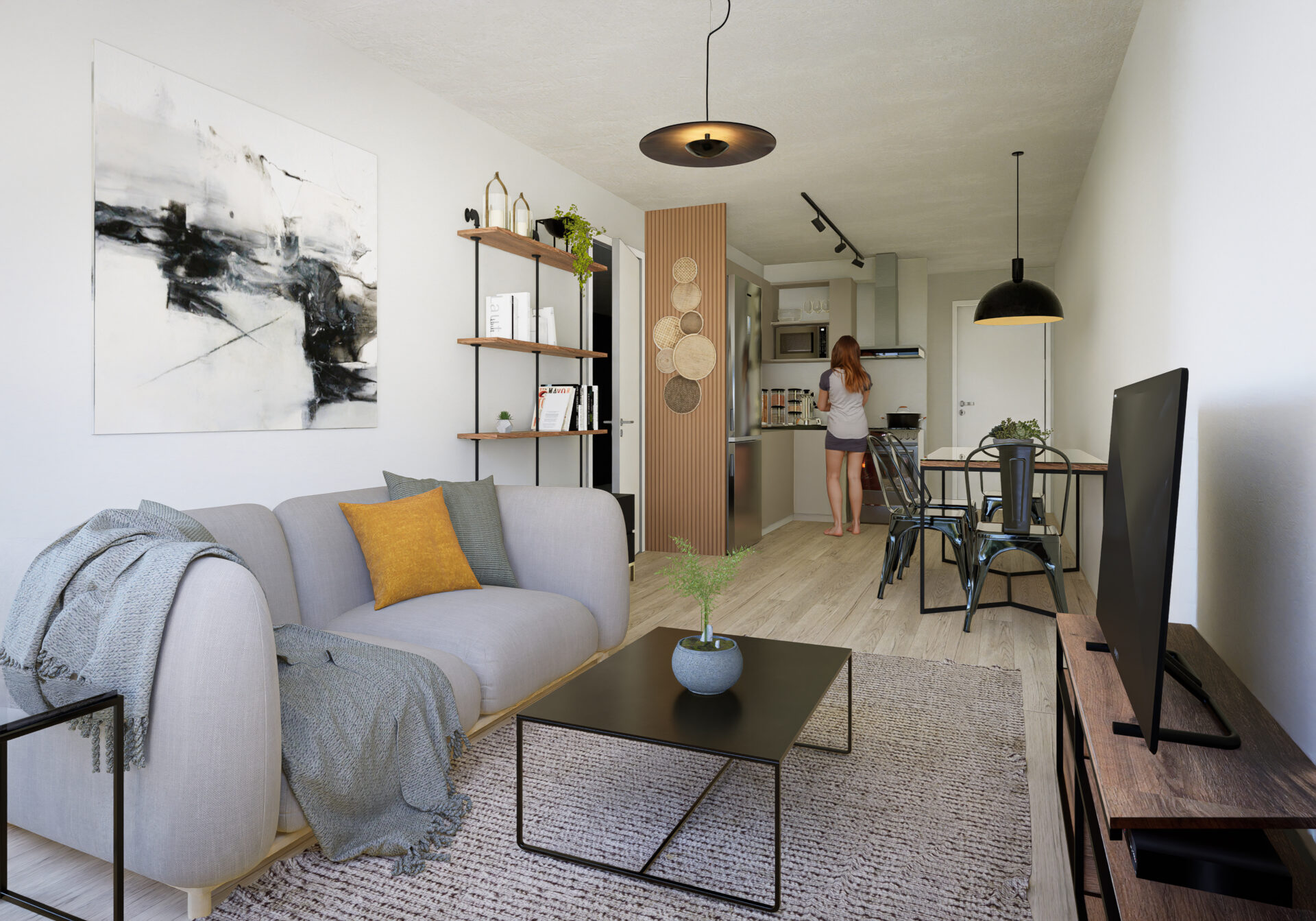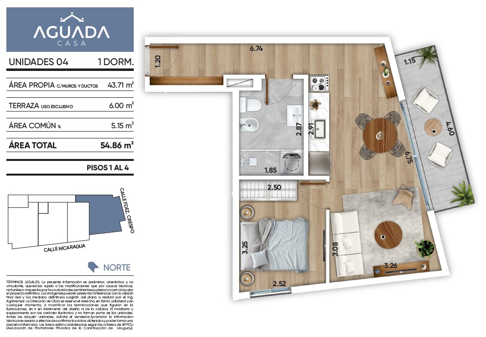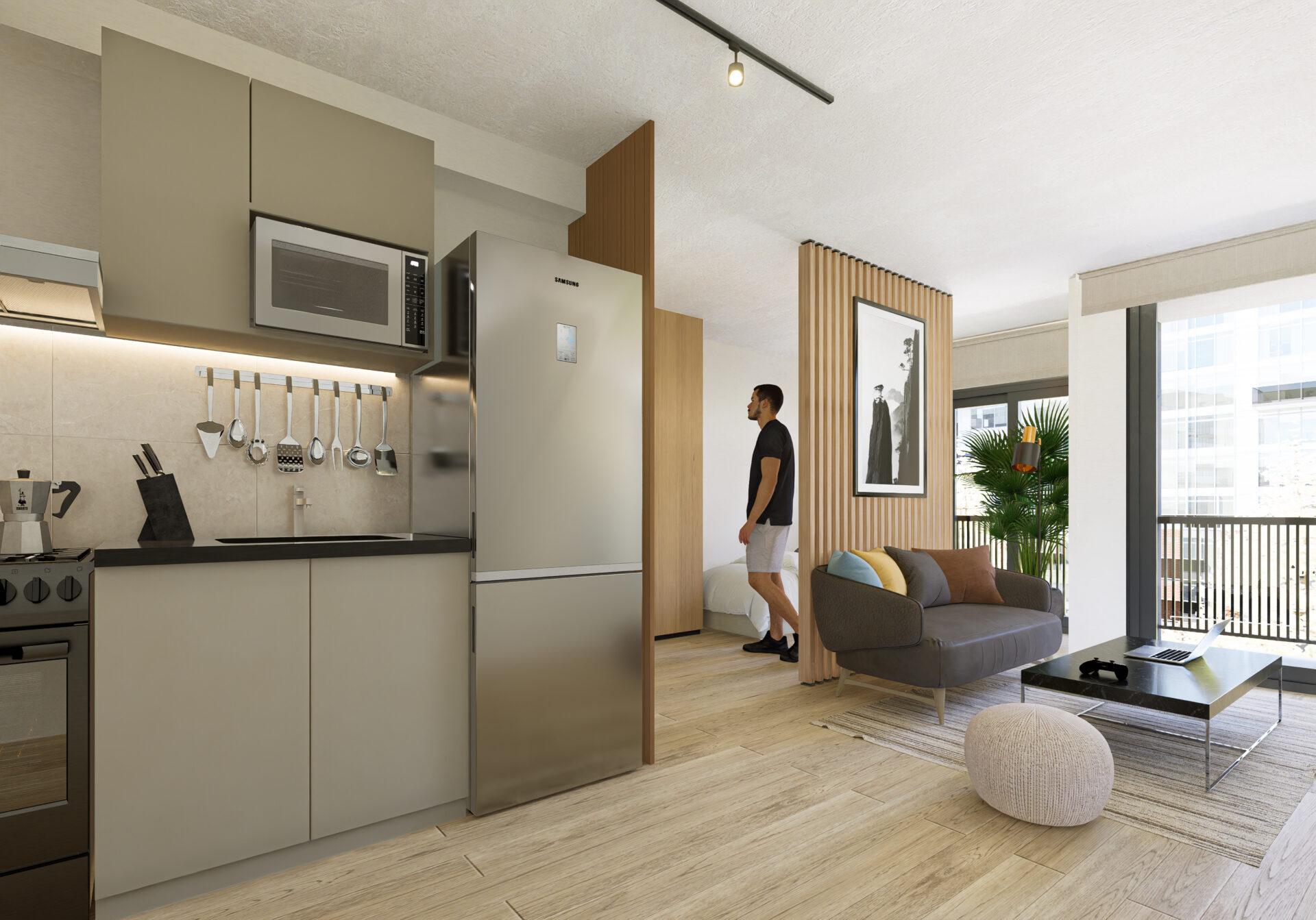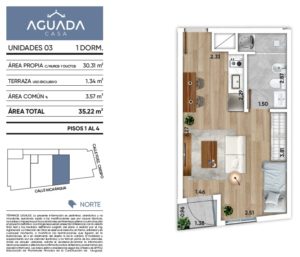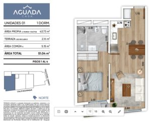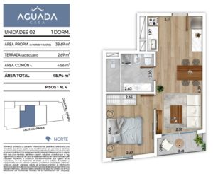 El edificio tendrá 16 apartamentos, 12 de 1 dormitorio en 3 tipologías distintas y 4 monoambientes.