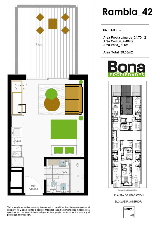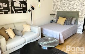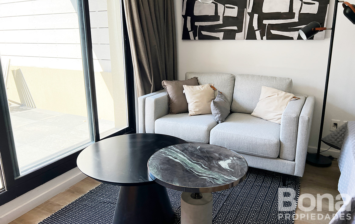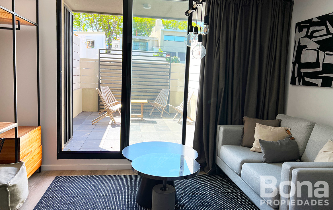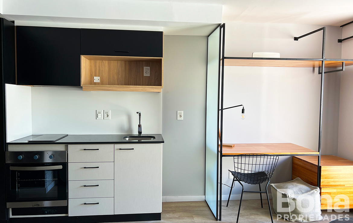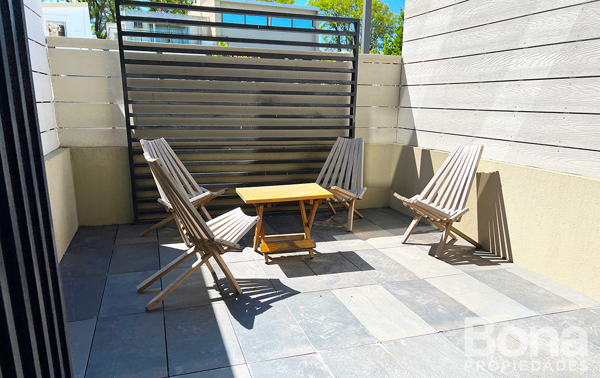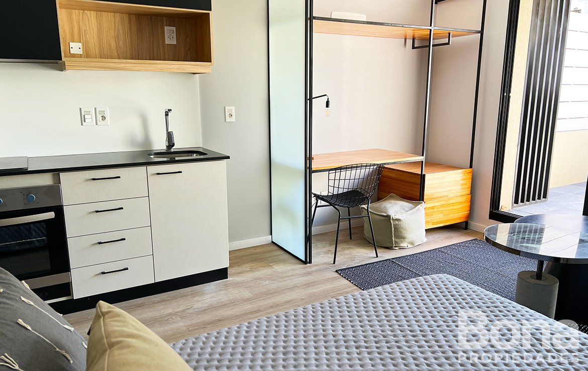 Tiene un gran ventanal con salida al patio. Si bien es un único ambiente, la planta permite equiparlo con dormitorio con cama 2 plazas y living con sofá y mesa ratona. Además cuenta con una cocina cómoda, una mesa tipo escritorio y patio muy soleado.
